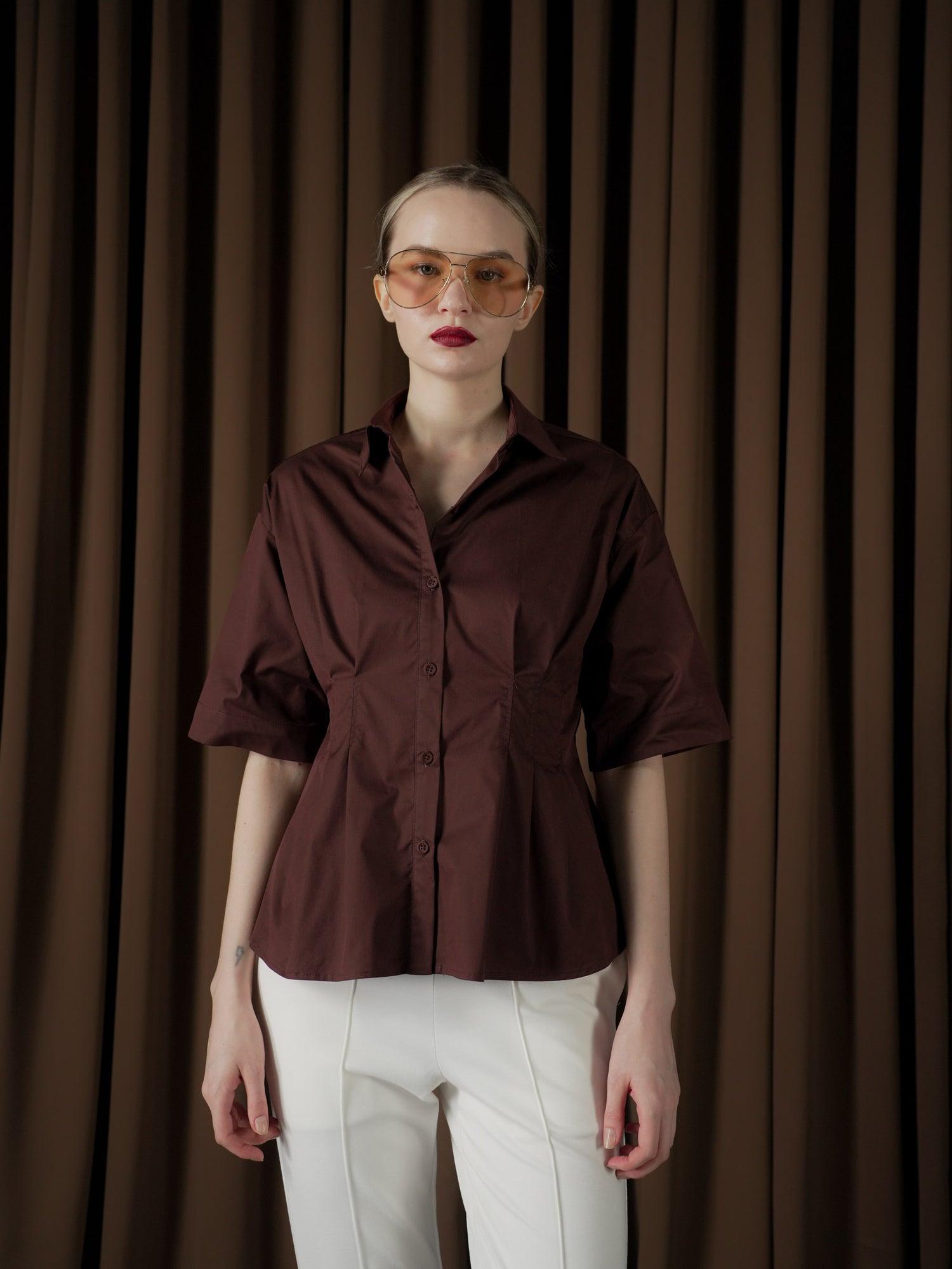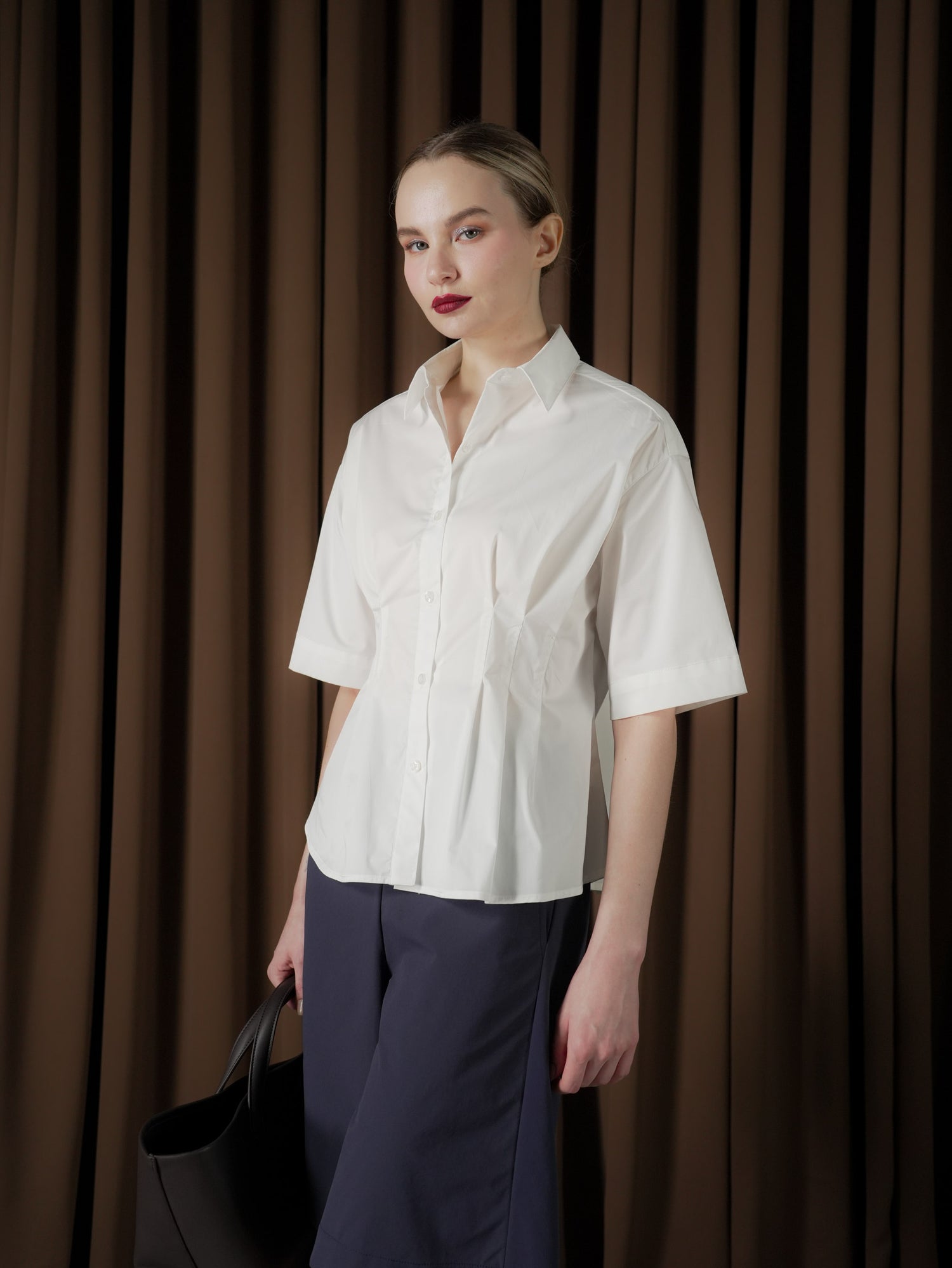 Elevate your style with the Erich Pleated Waist Top, designed with a classic button-down collar and a pleated waist that creates a flattering cinched effect. This top combines structured sophistication with effortless charm, making it perfect for both workdays and casual outings. Experience a tailored fit that enhances your silhouette while providing comfortable wear throughout the day.