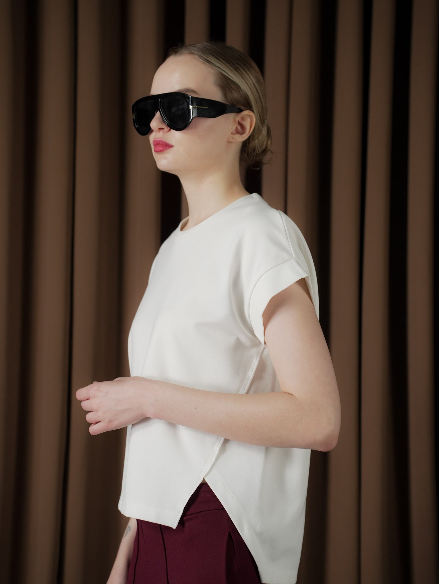 The Yendy Thread Detail Top features a striking cut-out edged slanted seam slit detail on the front, adding a modern edge to your wardrobe. This unique design elevates a classic silhouette, offering both style and breathability for all-day comfort. Perfect for those who want to make a subtle yet confident statement.