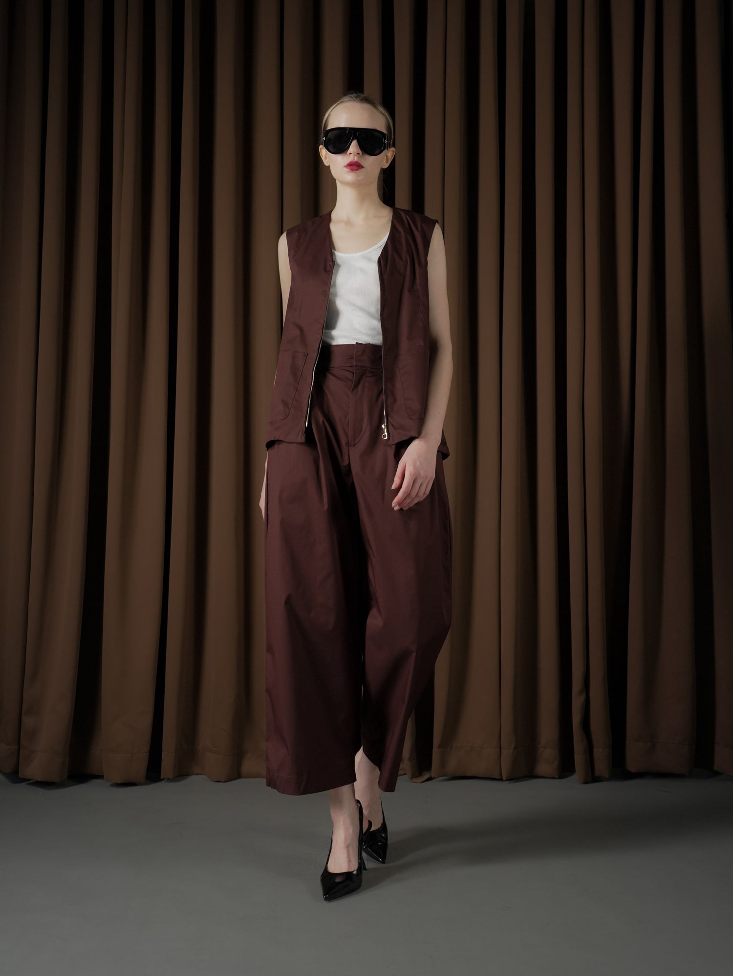 Expertly crafted for a cohesive look, the Aurora Vest Pants Set features a sleek vest top with a front zipper closure, v neck, and convenient patch pockets. Accompanied by wide poplin pants with a zipper placket closure, this set offers effortless style and practical functionality. Upgrade your wardrobe with this must-have set.
