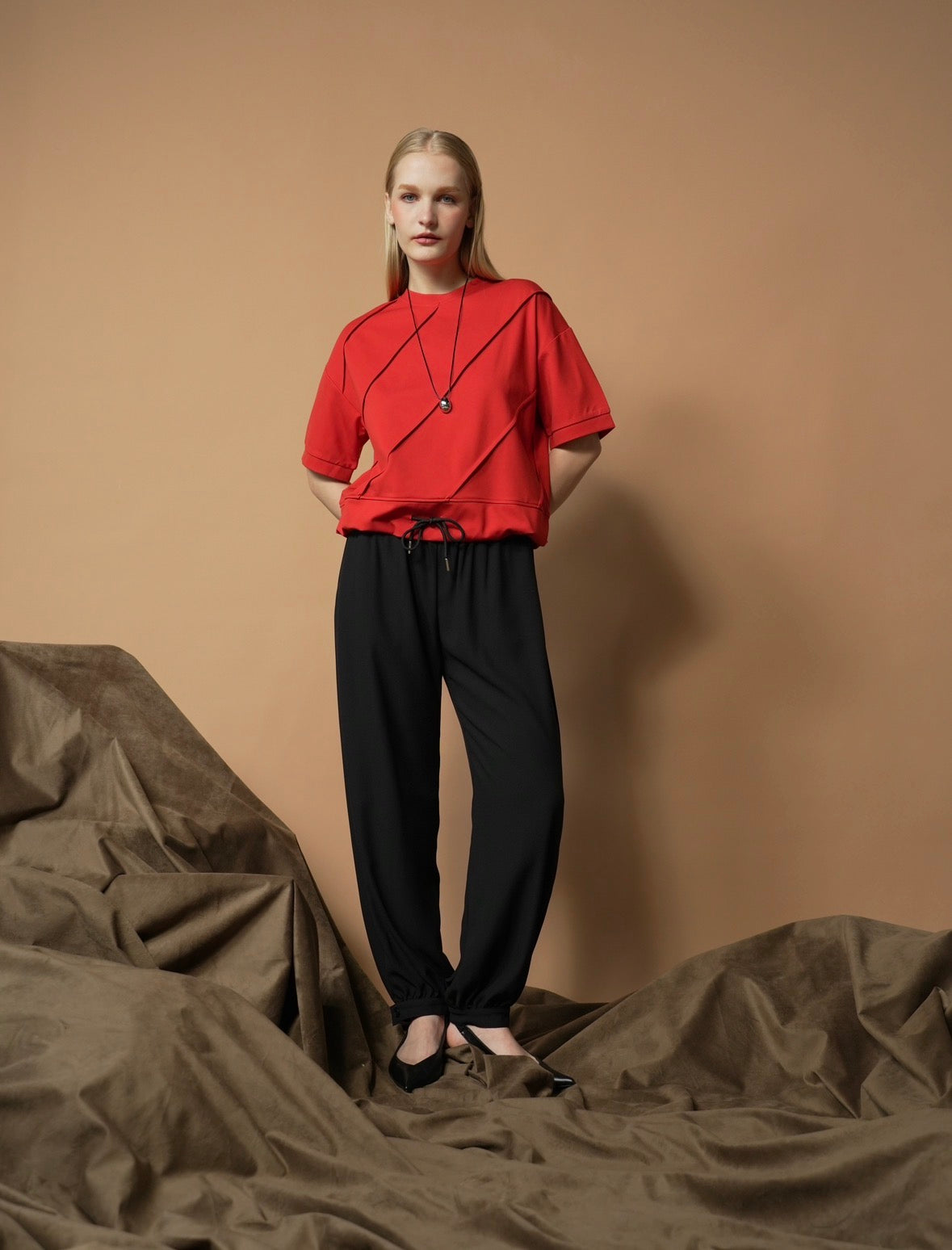 Elevate your everyday wardrobe with the Lassy Slanted Pleats Top, a sophisticated piece that combines timeless style with modern flair. Featuring a classic crew neck and striking slanted pleat cuts that add dimension and movement to your silhouette, this top delivers effortless elegance. The adjustable waist detail allows you to customize the fit to your preference, ensuring a flattering look whether you're dressing up or down. Versatile enough for the office or weekend outings, this top is a wardrobe essential that works harder than it looks.