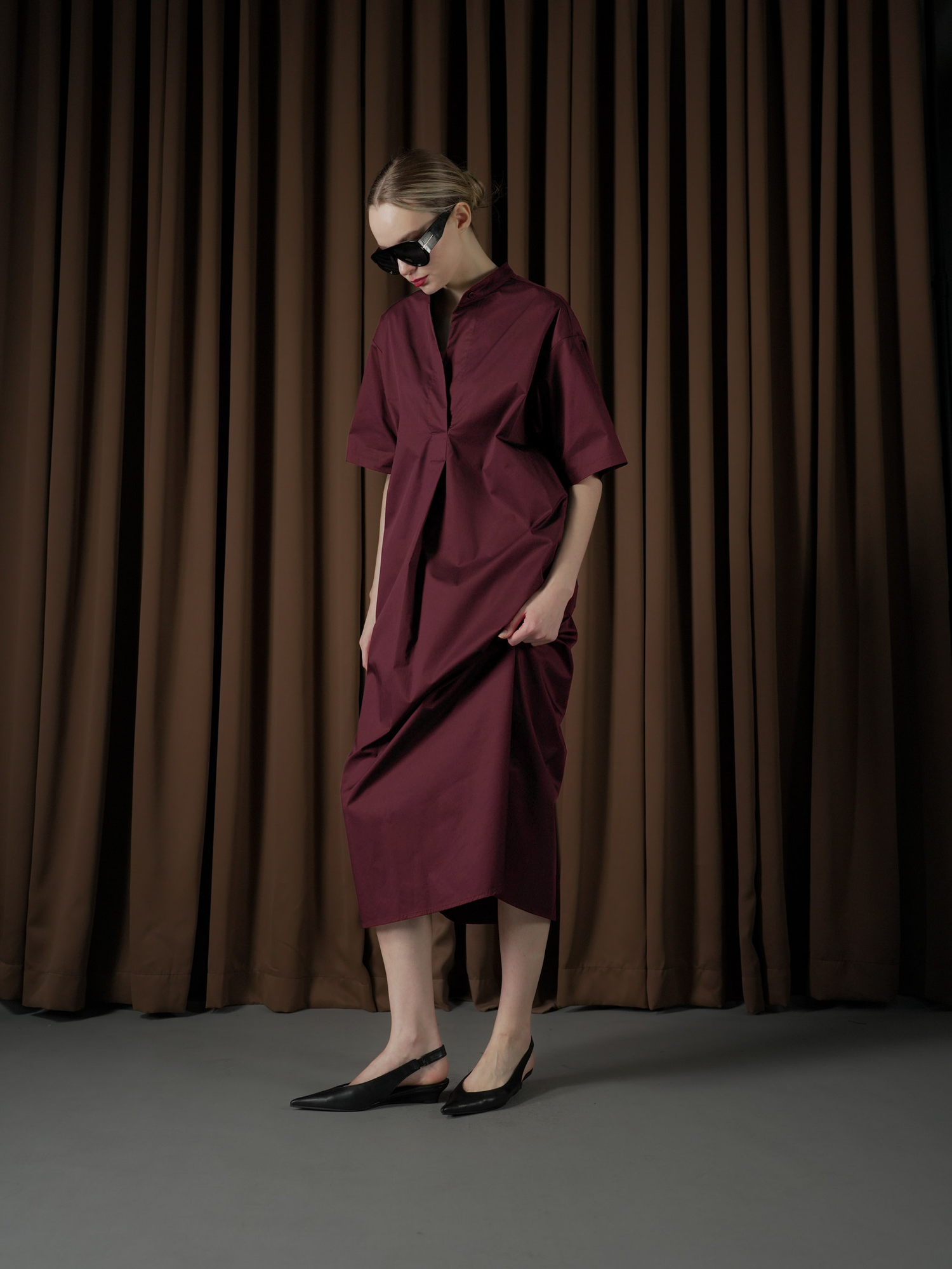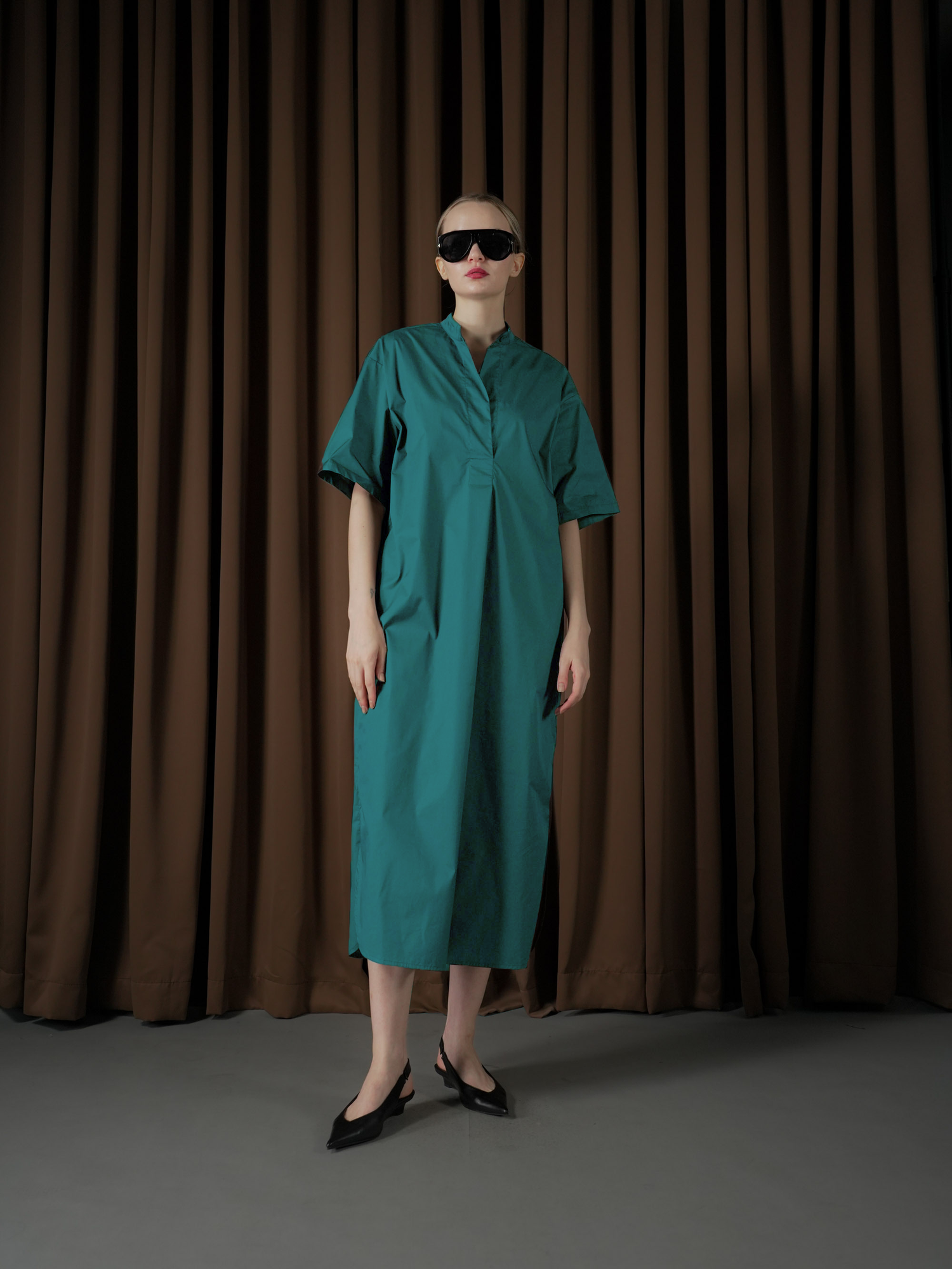 The Catriona Maxi Dress features a placket neck mandarin collar and a curved hem side slit for a modern and elegant look. With its flattering maxi dress design, this dress is perfect for any occasion. Elevate your style and comfort with this versatile and chic dress.