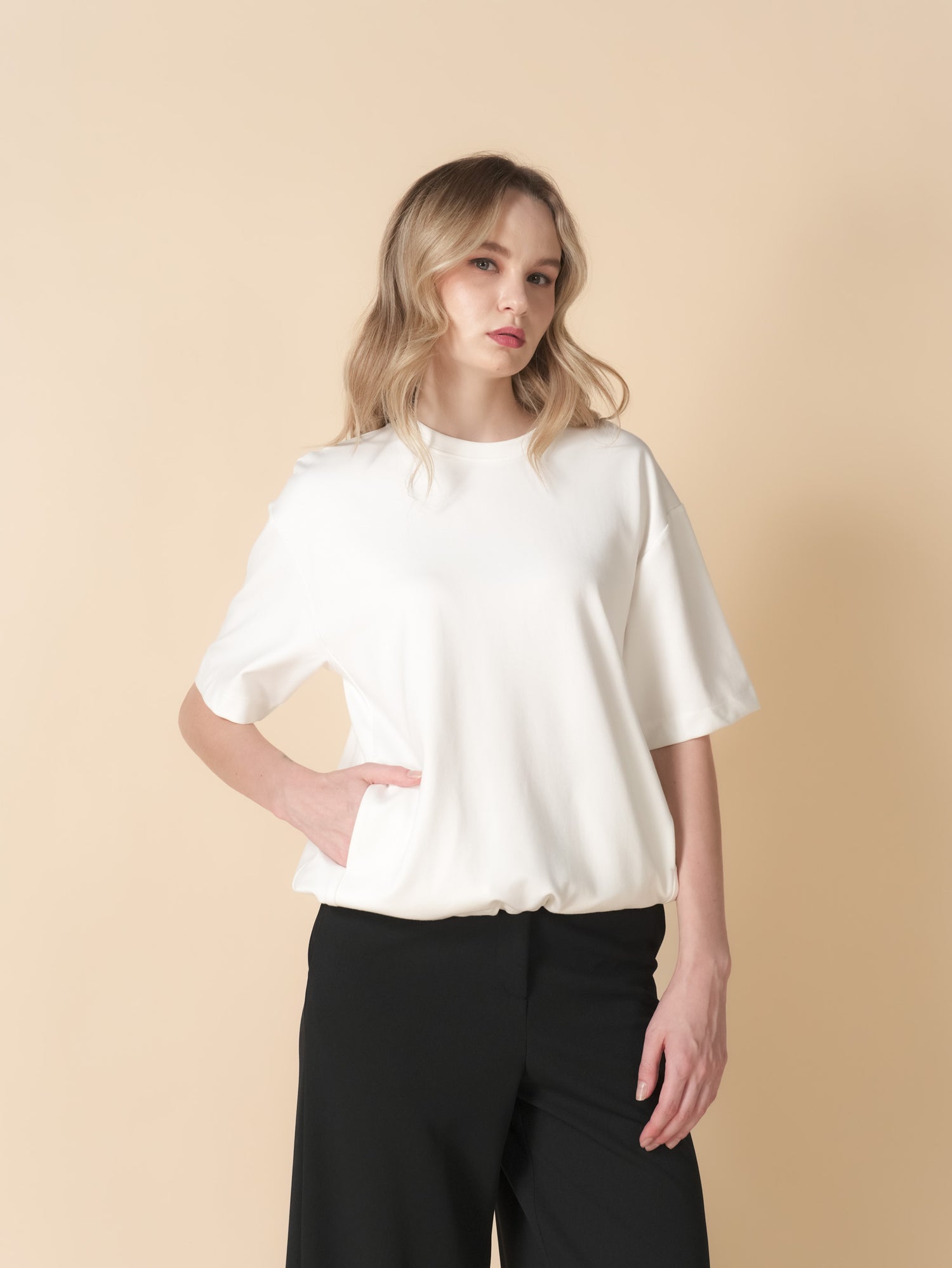 The Connie Basics With Slit Pocket offers a timeless round neck design enhanced by a subtle forward seam detail, adding a refined touch to your everyday look. Its discreet slit pocket provides convenient storage without compromising style, making it both practical and effortlessly chic for any casual occasion. Elevate your basics with this essential tee that combines comfort and functionality seamlessly.