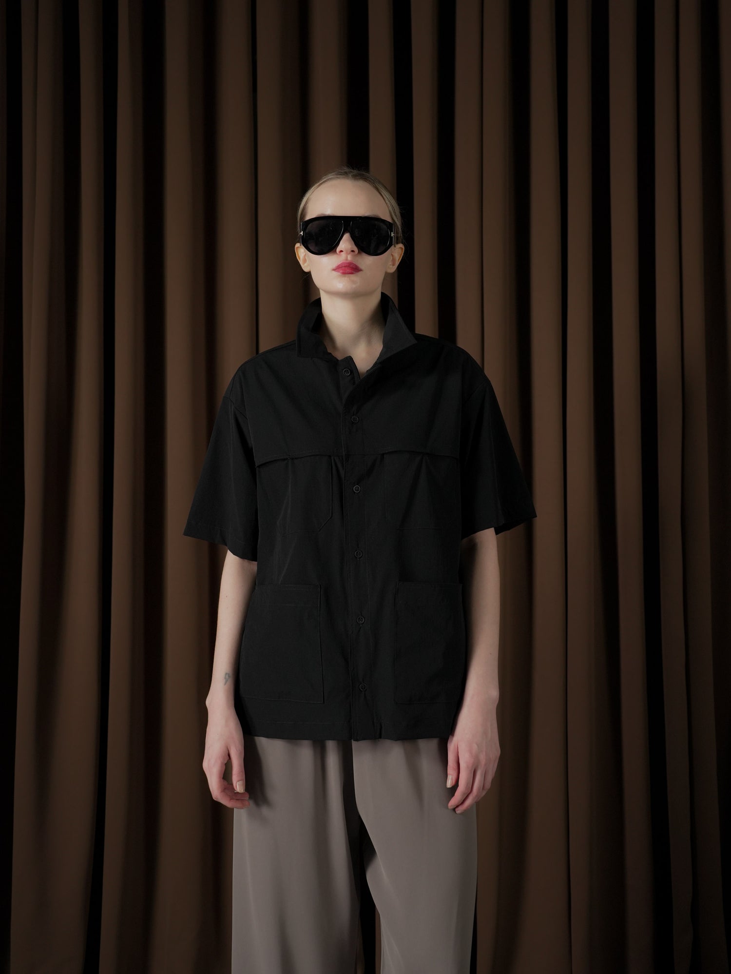 Elevate your everyday style with the Cristy Multipocket Top, designed for both function and fashion. This boxy button-down shirt features multiple pockets, offering practical storage without compromising on chic. Its structured silhouette provides a modern edge, perfect for layering or wearing on its own. Experience the perfect blend of convenience and contemporary flair with this versatile top.