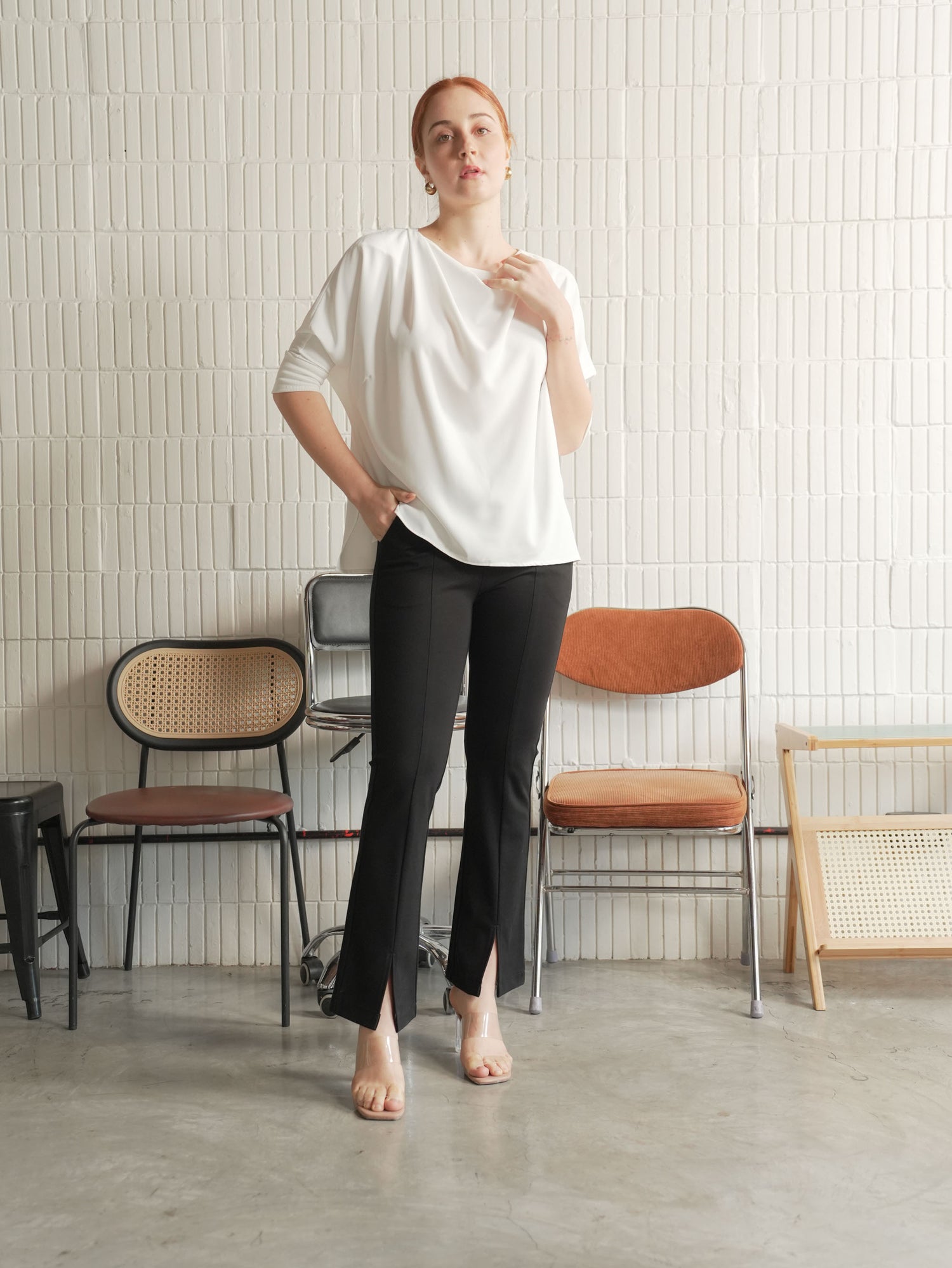 Elevate your style with our Gelo Slit Flared Pants. Designed with a front slit detail, these pants offer a unique twist to the classic flared silhouette. Perfect for any occasion, these pants are sure to make a statement while providing a comfortable and flattering fit. Try them today!