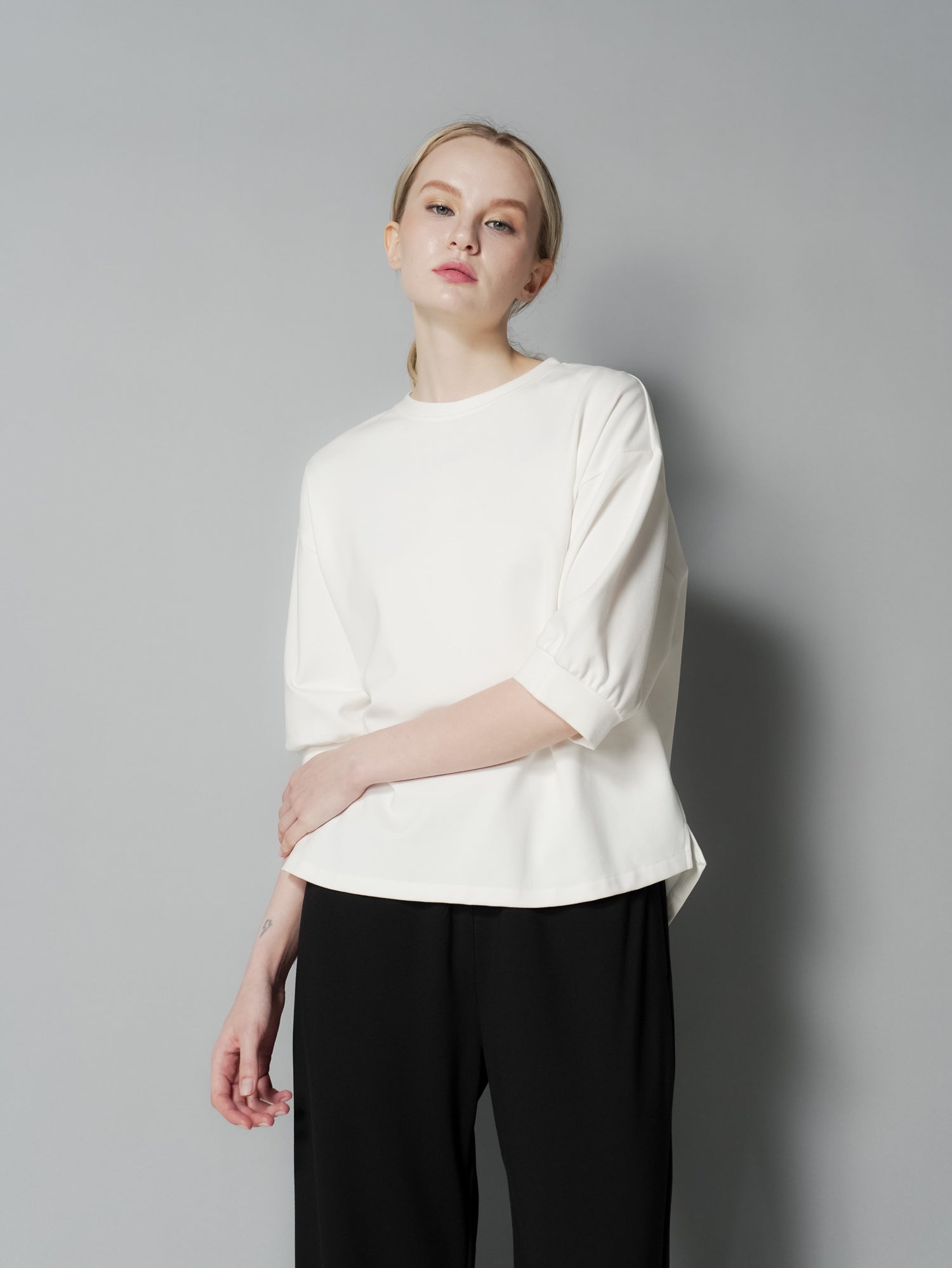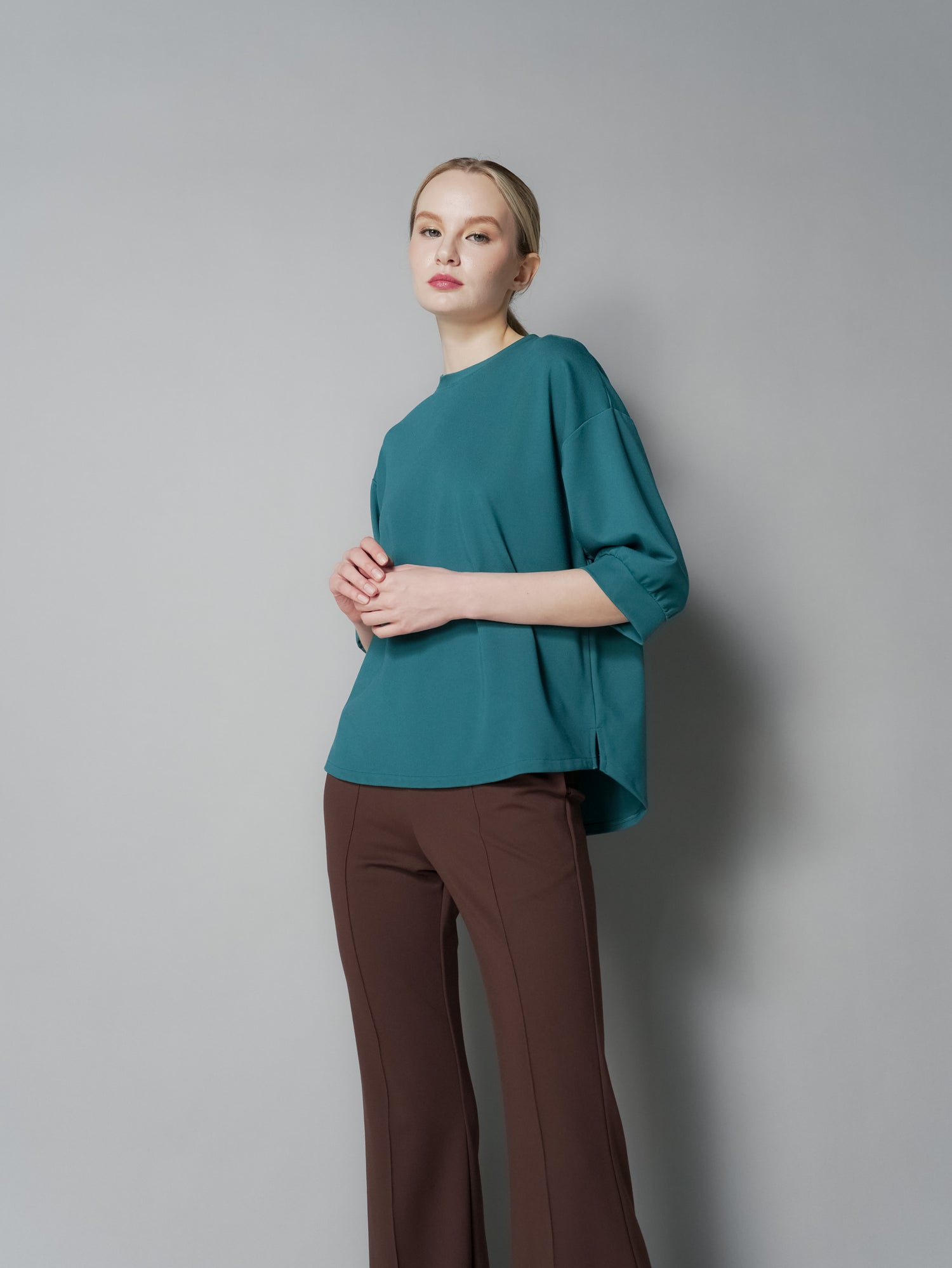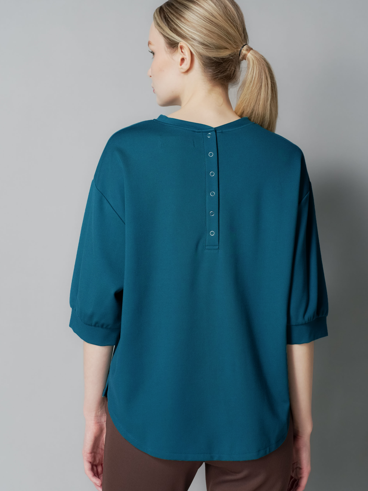 Upgrade your wardrobe with the Lana Snap Back Top. This top features a drop shoulder design for a comfortable fit and a unique back snap closure for added style. The curve back hem adds a flattering touch to this versatile top. Elevate your look with this must-have piece.