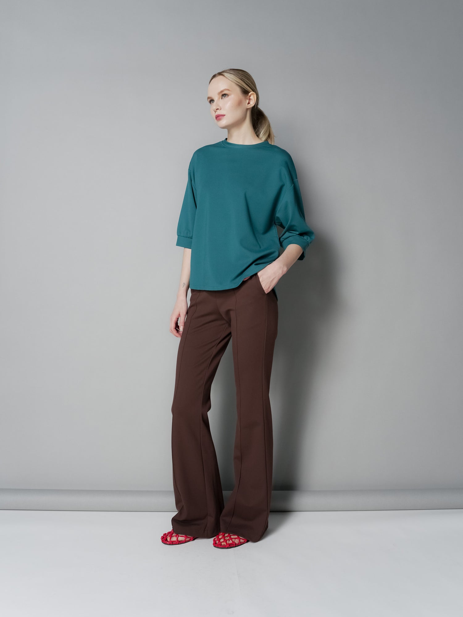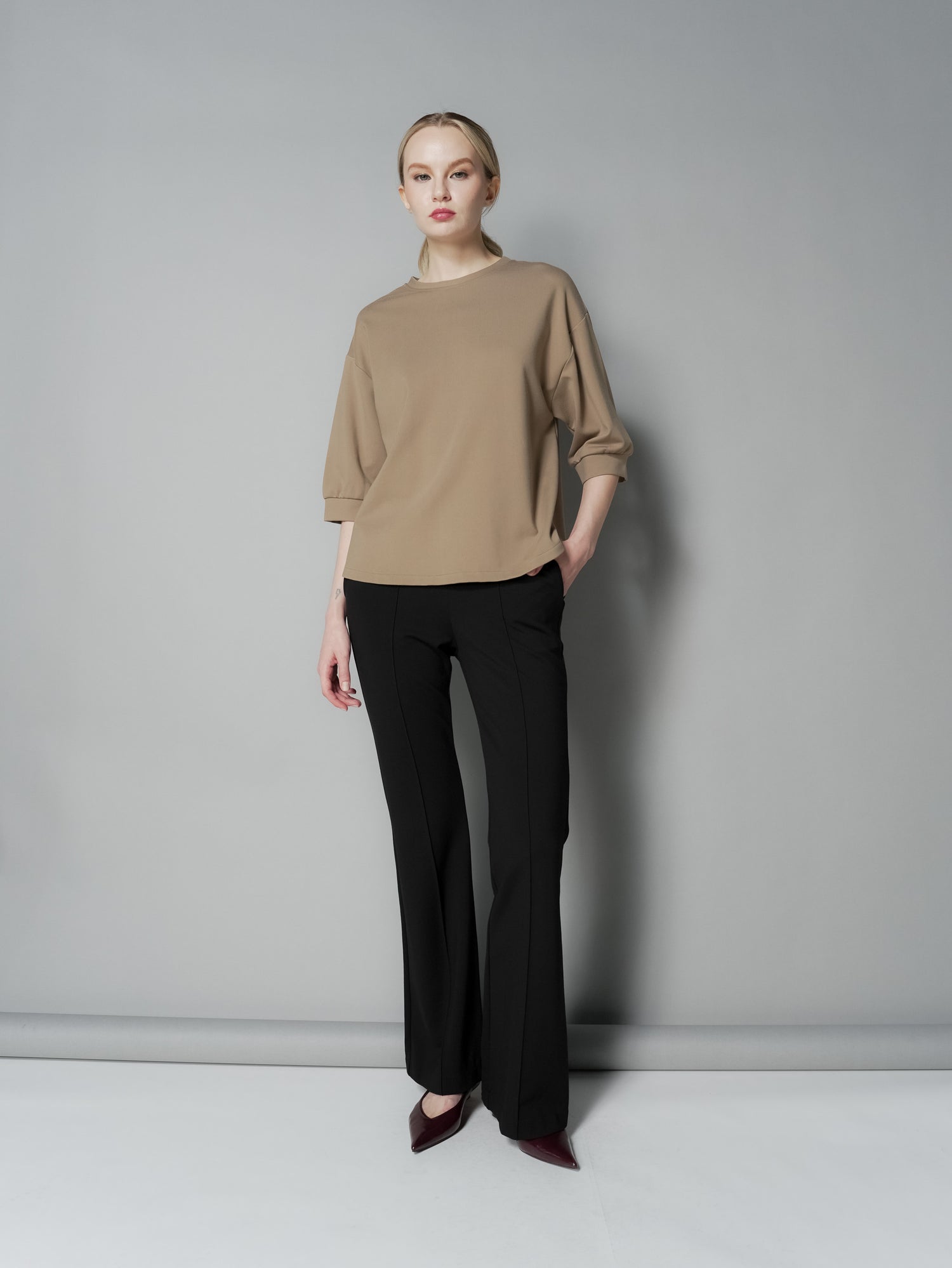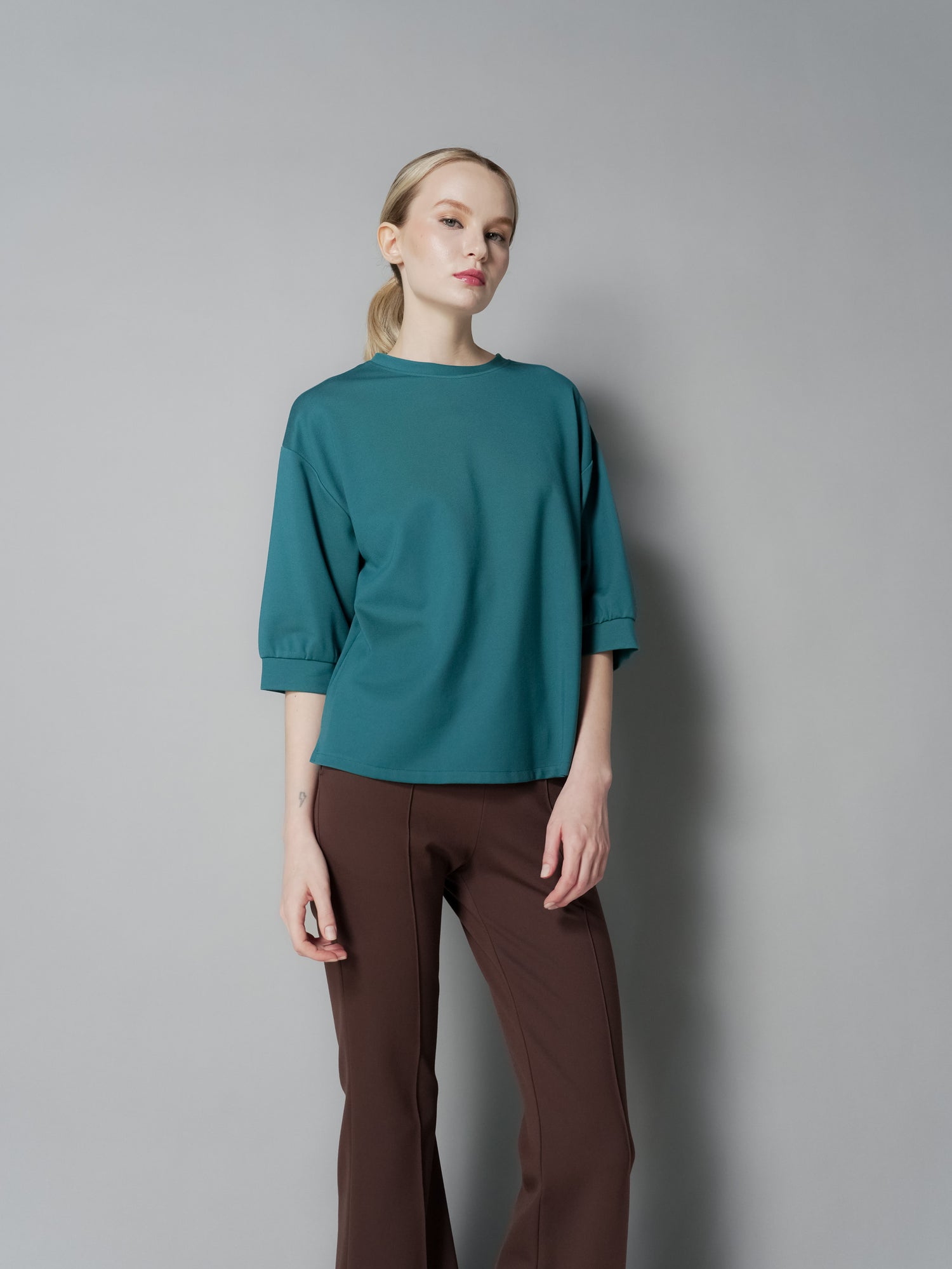 Upgrade your wardrobe with the Lana Snap Back Top. This top features a drop shoulder design for a comfortable fit and a unique back snap closure for added style. The curve back hem adds a flattering touch to this versatile top. Elevate your look with this must-have piece.