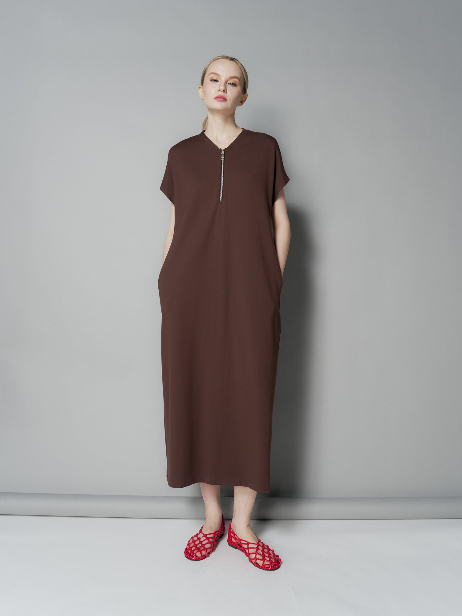 The Lira Zipped Maxi Dress combines effortless style with practical design. Featuring a convenient zip neck closure and short sleeves, it offers both comfort and ease. Side pockets add functionality without sacrificing elegance, while the center back slit enhances movement and adds a subtle touch of allure. Perfect for any occasion, this dress is a versatile addition to your wardrobe.