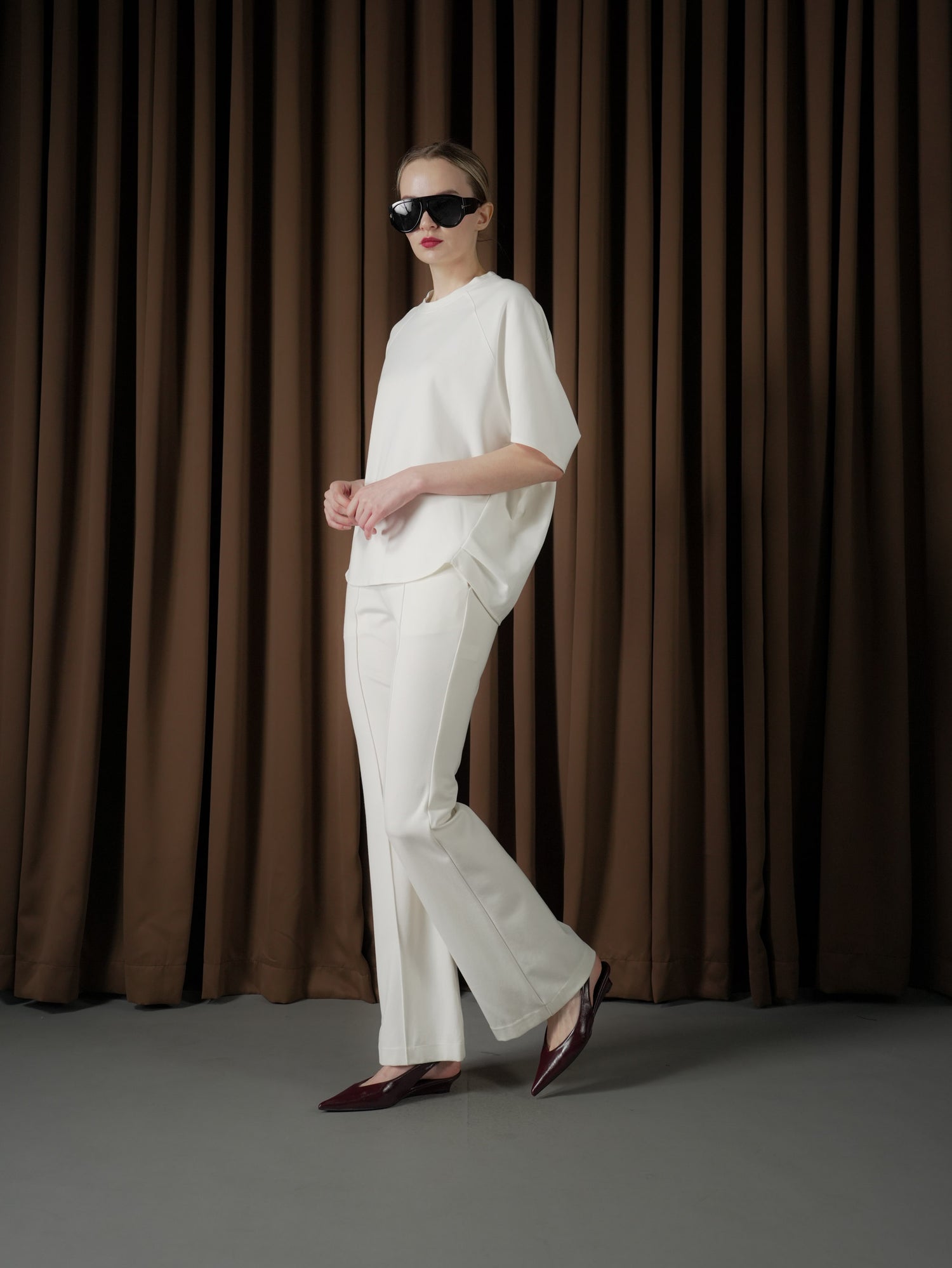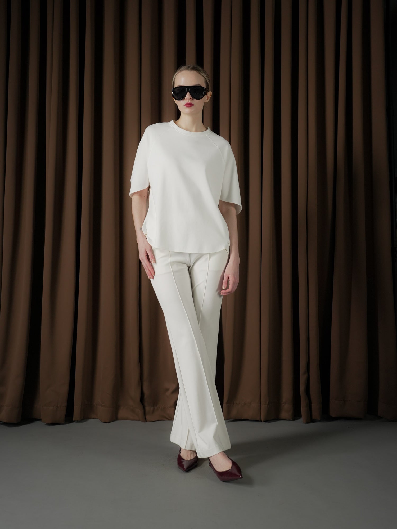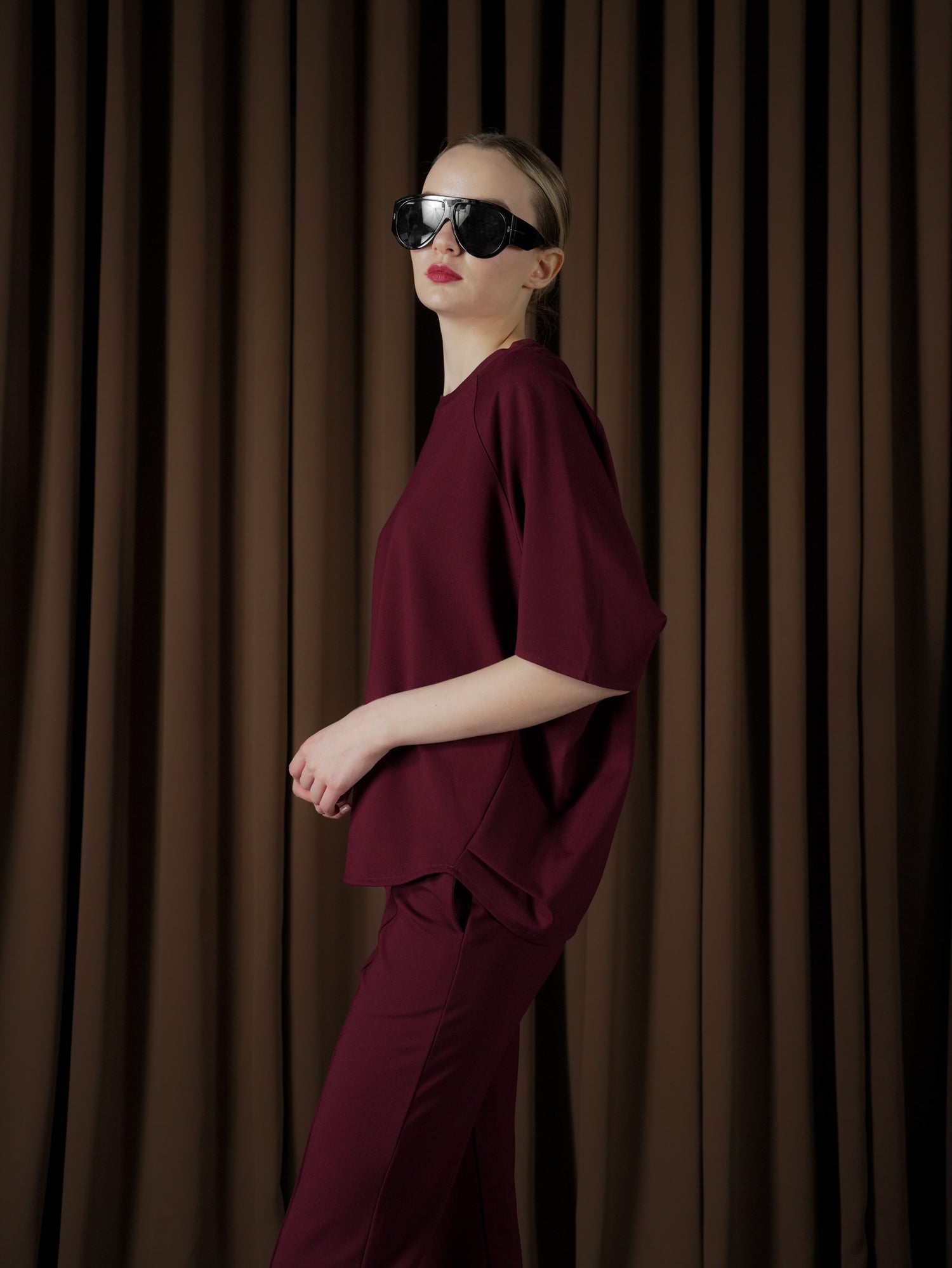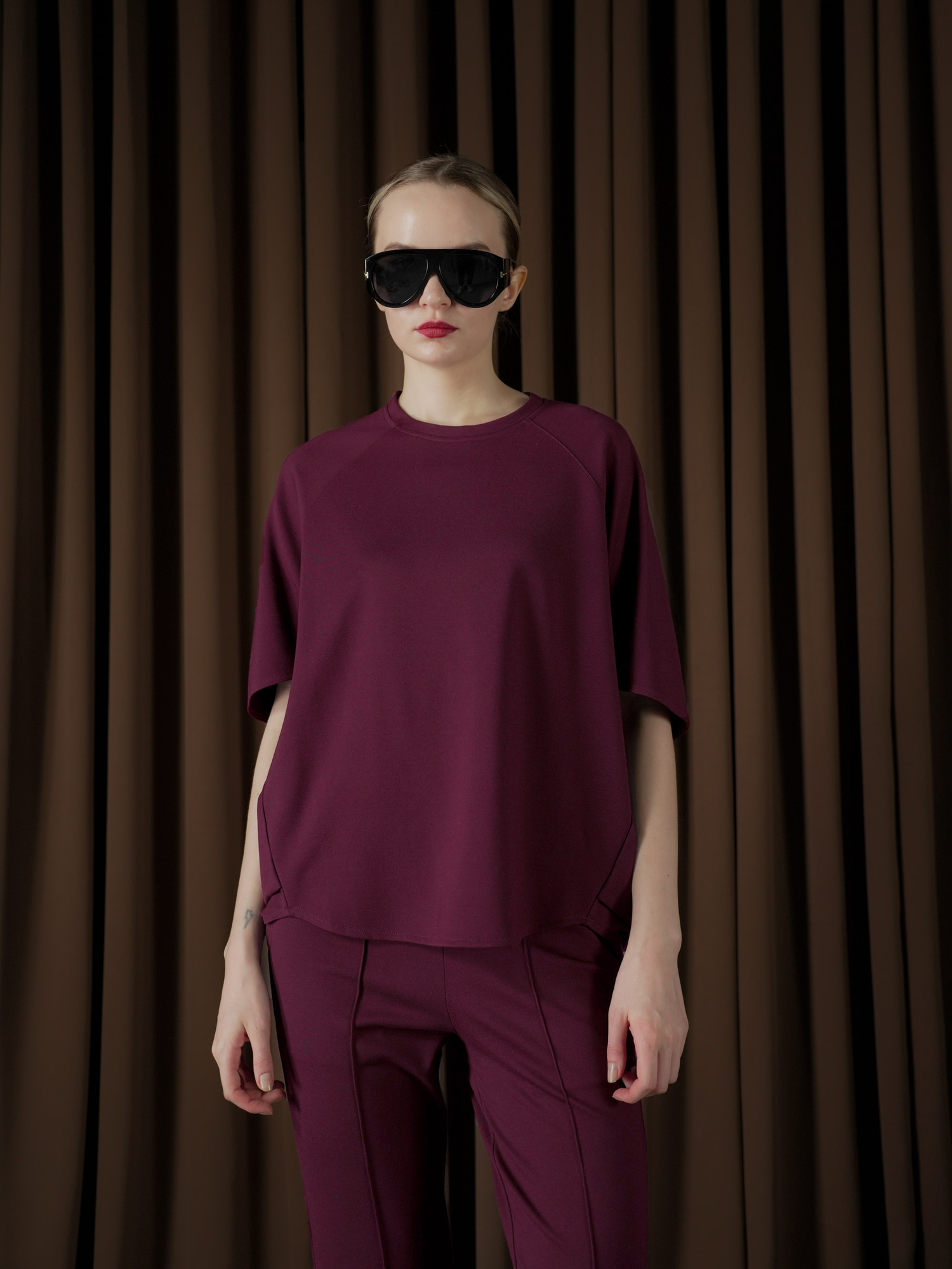 The Nadine Loose Top combines comfort and style with its relaxed round neck and easy dolman raglan sleeves. Its high-low hem, detailed with side pleats, adds a modern touch that flatters your silhouette from every angle. Forward side seams enhance the fit, making this top a versatile wardrobe staple perfect for any occasion.