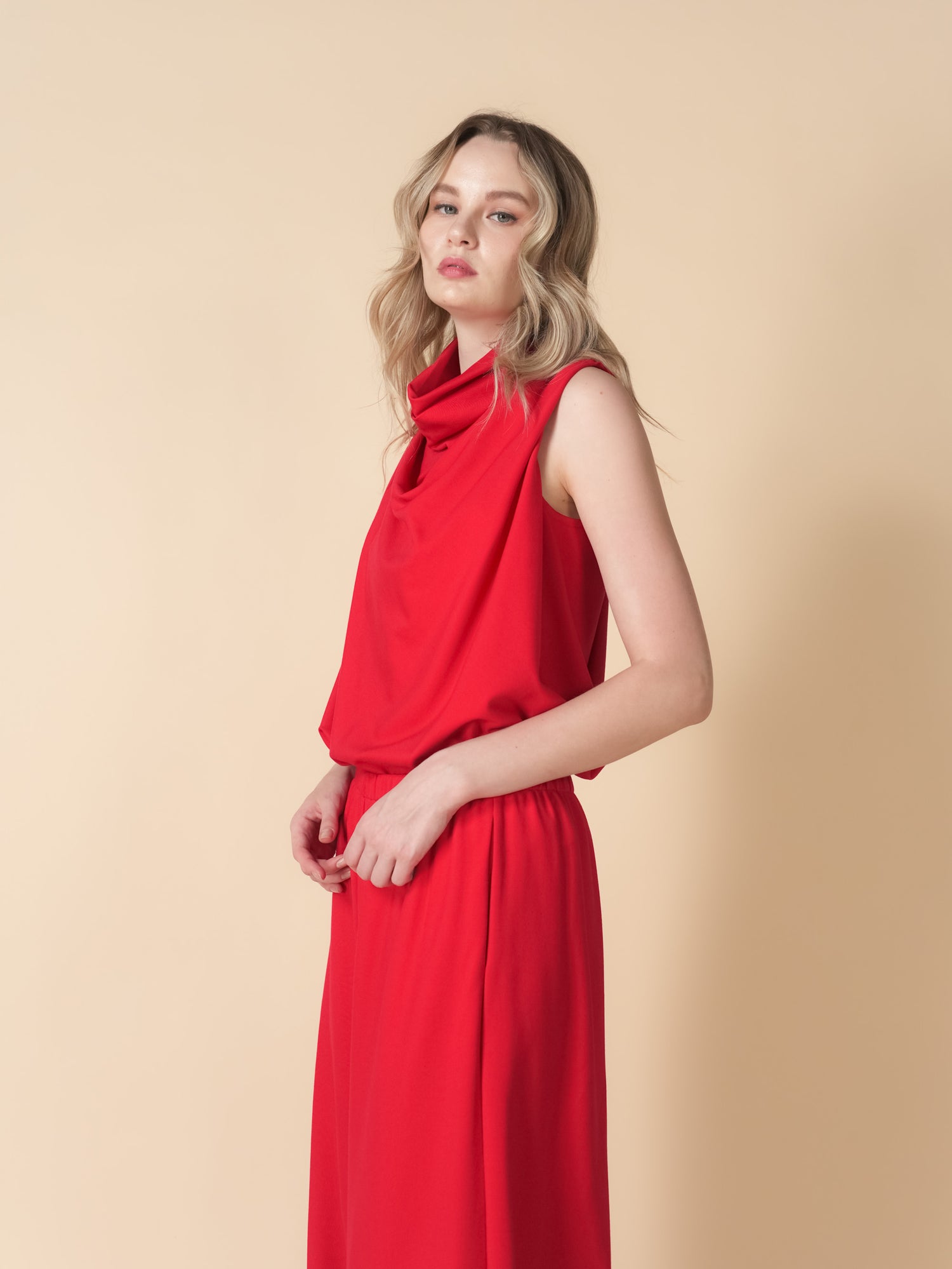 The elegance of our Sheera top is all because of its flattering cowl neck detail which falls to a halter back design with a zip closure for easy wear. Made from soft punto fabric, it offers comfort and sophistication for any occasion.