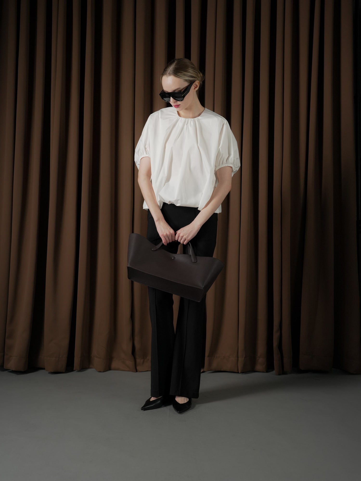 Expertly designed for both comfort and style, the Stefani Rounded Shape Top features a round neck and blouson shirred gathers on the hem and neckline, adding a touch of elegance. With a zip closure on the back, this top provides a perfect fit every time. Elevate your wardrobe with this must-have piece.