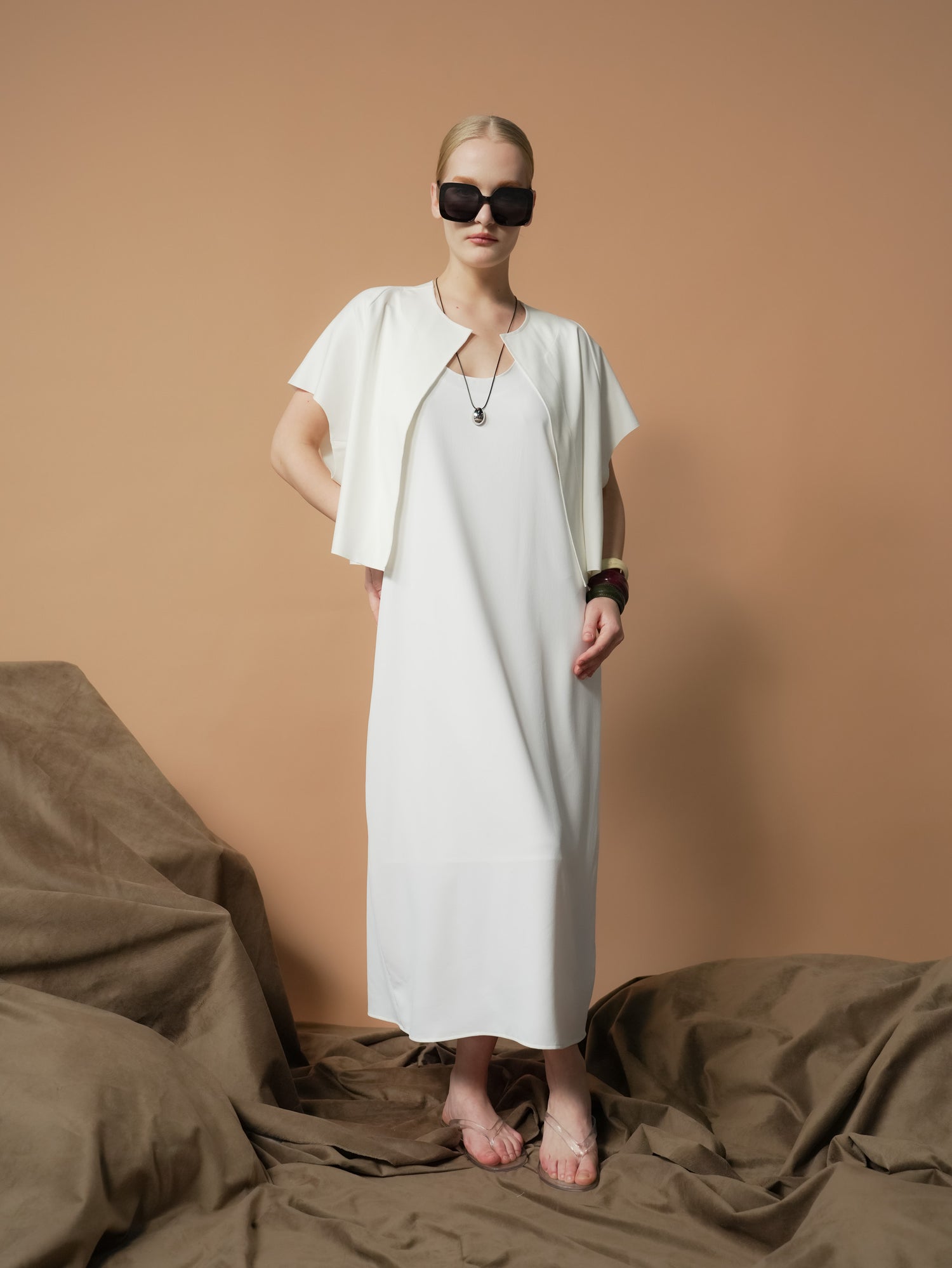 Winny Cropped Jacket Effortlessly refined, this cropped cardigan-style jacket strikes the perfect balance between casual elegance and polished sophistication. Crafted with short sleeves for warm-weather versatility, it layers beautifully over dresses, tanks, or tees. The tailored silhouette flatters while maintaining an understated, contemporary aesthetic. An essential piece for elevating your everyday wardrobe with timeless style.