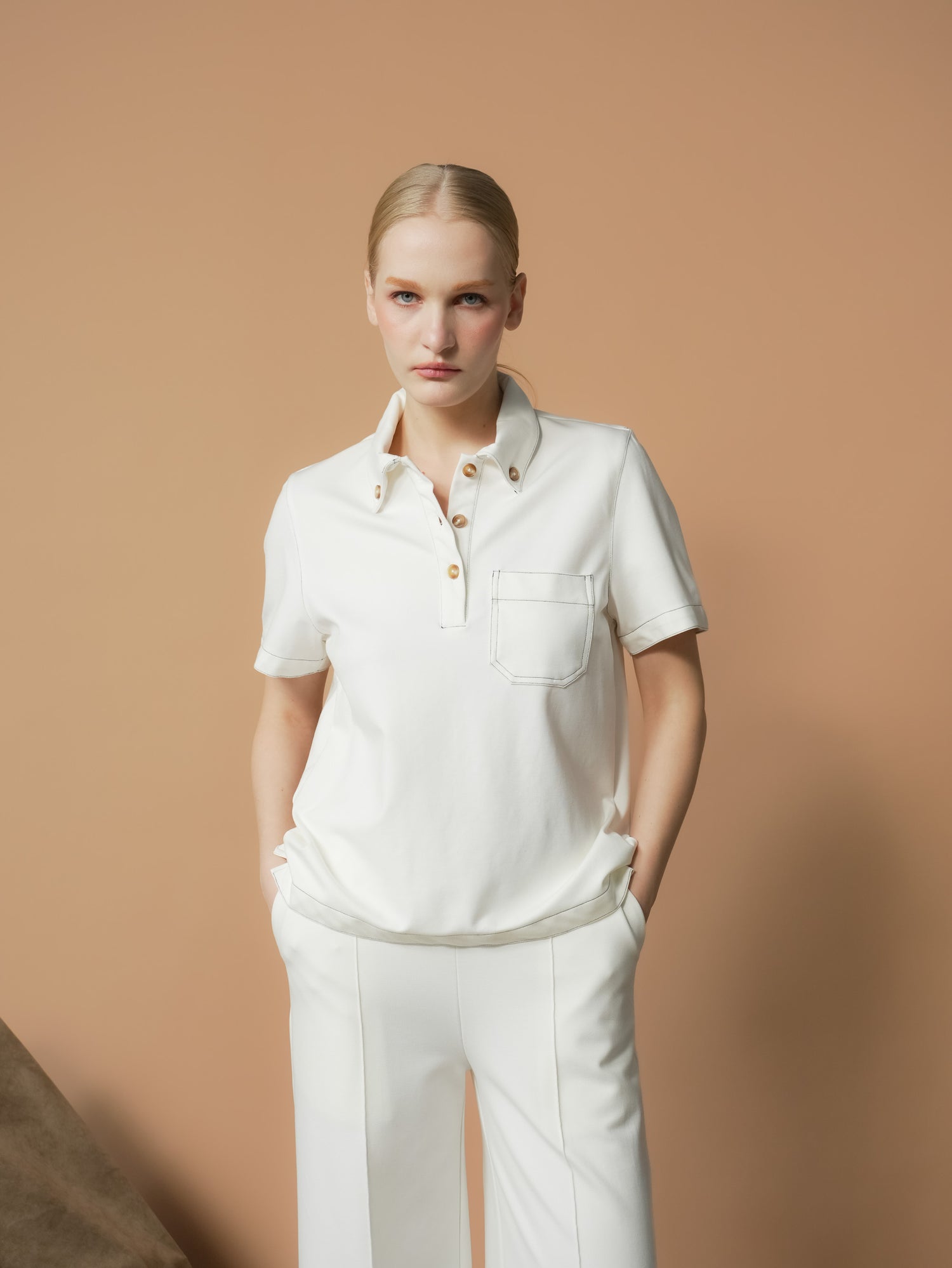 The Yoya Contrast Thread Polo Top is a masterclass in refined simplicity. Elegant contrast stitching traces the garment with precision, adding dimension without ostentation. A crisp collar and button front provide timeless structure, complemented by a distinctive button detail at the neckline that whispers rather than shouts. The chest patch pocket balances form and function with understated grace. Designed for those who appreciate the finer points of tailoring, this polo transitions effortlessly from boardroom to weekend retreat, proving that true sophistication lies in thoughtful details